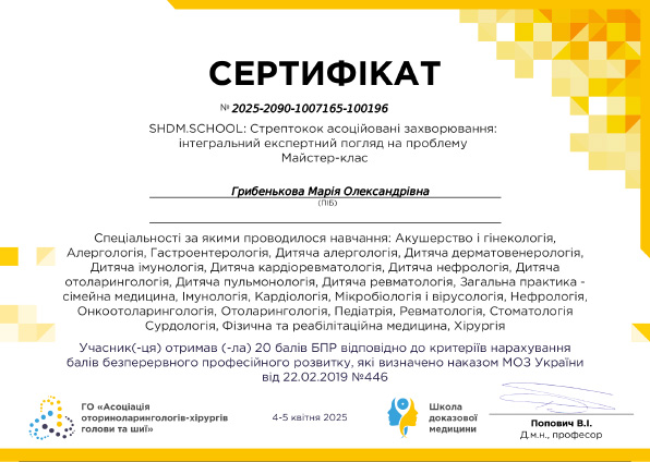 • Майстер-клас : SHDM.SCHOOL: Стрептокок асоційовані захворювання: інтегральний експертний погляд на проблему (04-05.25)