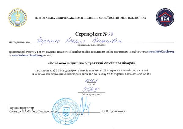 - Навчальний цикл семінарів "Медичні стандарти лікування внутрішніх хвороб у клінічній практиці сімейного лікаря" (Запоріжжя, 2018)
