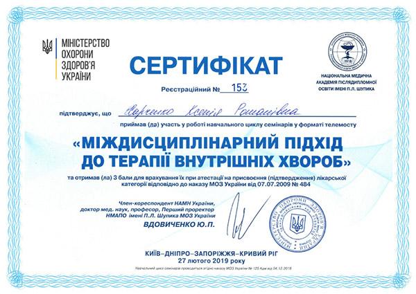 - Навчальний цикл семінару "Міждисциплінарний підхід до терапії внутрішніх хвороб" (Запоріжжя, 2019)