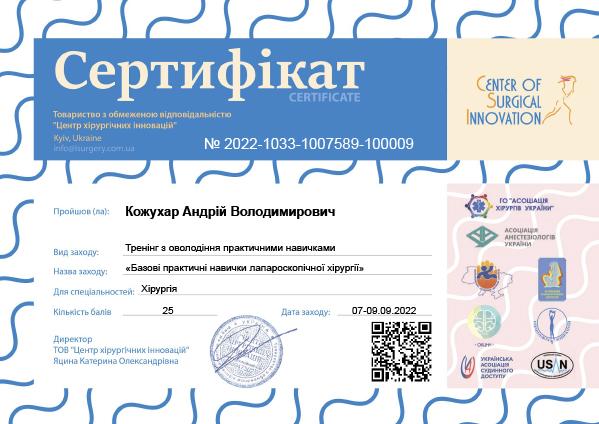 • Тренінг "Базові практичні навички лапороскопічної хірургії" (Київ, 2022)