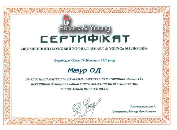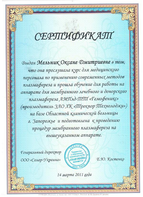 • Інтернатура в Запорізькій медичній академії післядипломної освіти та отримання сертифіката за фахом «Акушерство і гінекологія» (2006 р.)