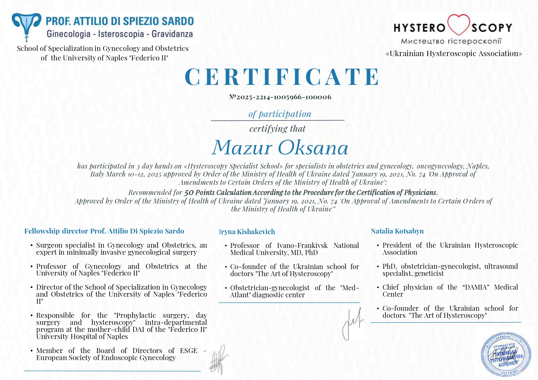- Фахова гістероскопічна школа-тренінг для лікарів м. Ніаполь, Італія, 10-12 березня 2025 р.