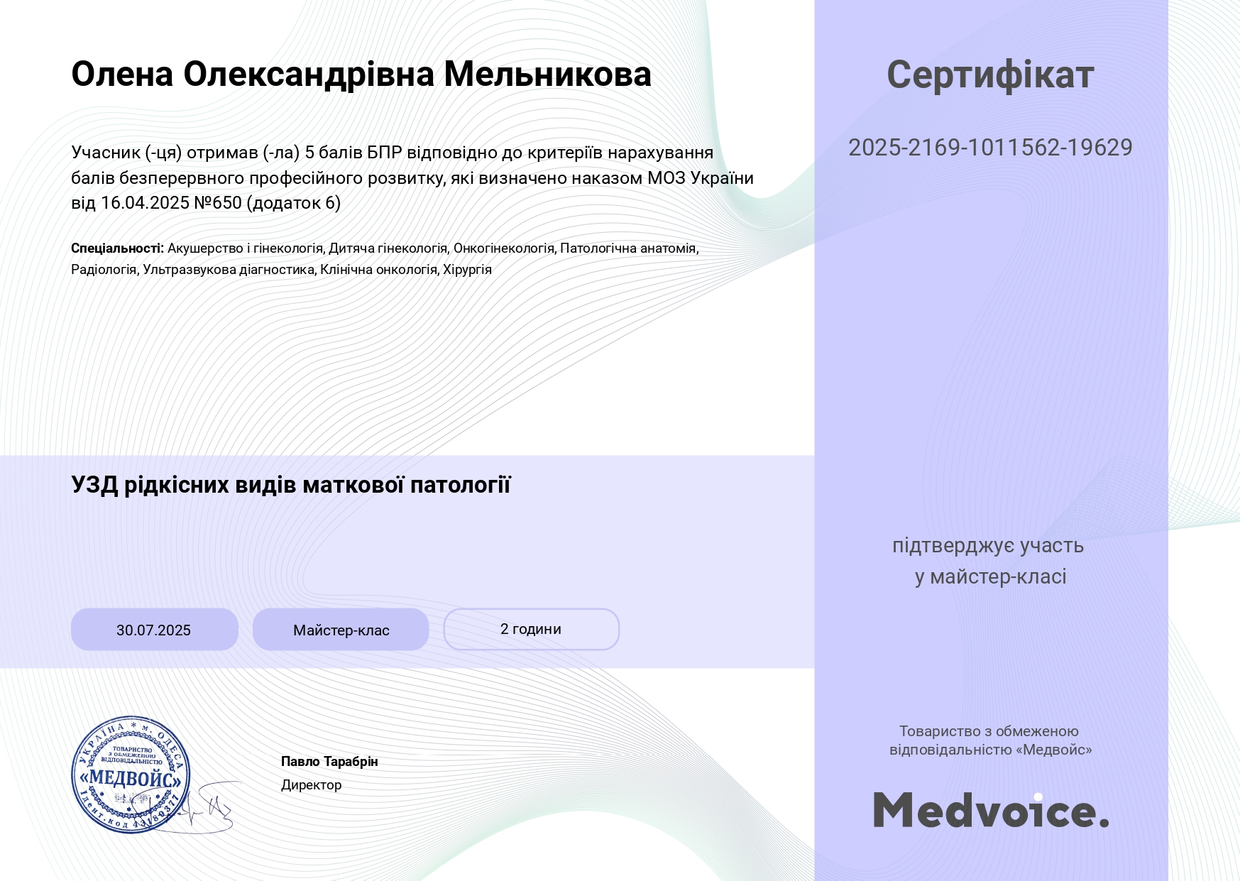 - Майстер-клас "УЗД рідкісних видів маткової патології" (Одеса, 2025)