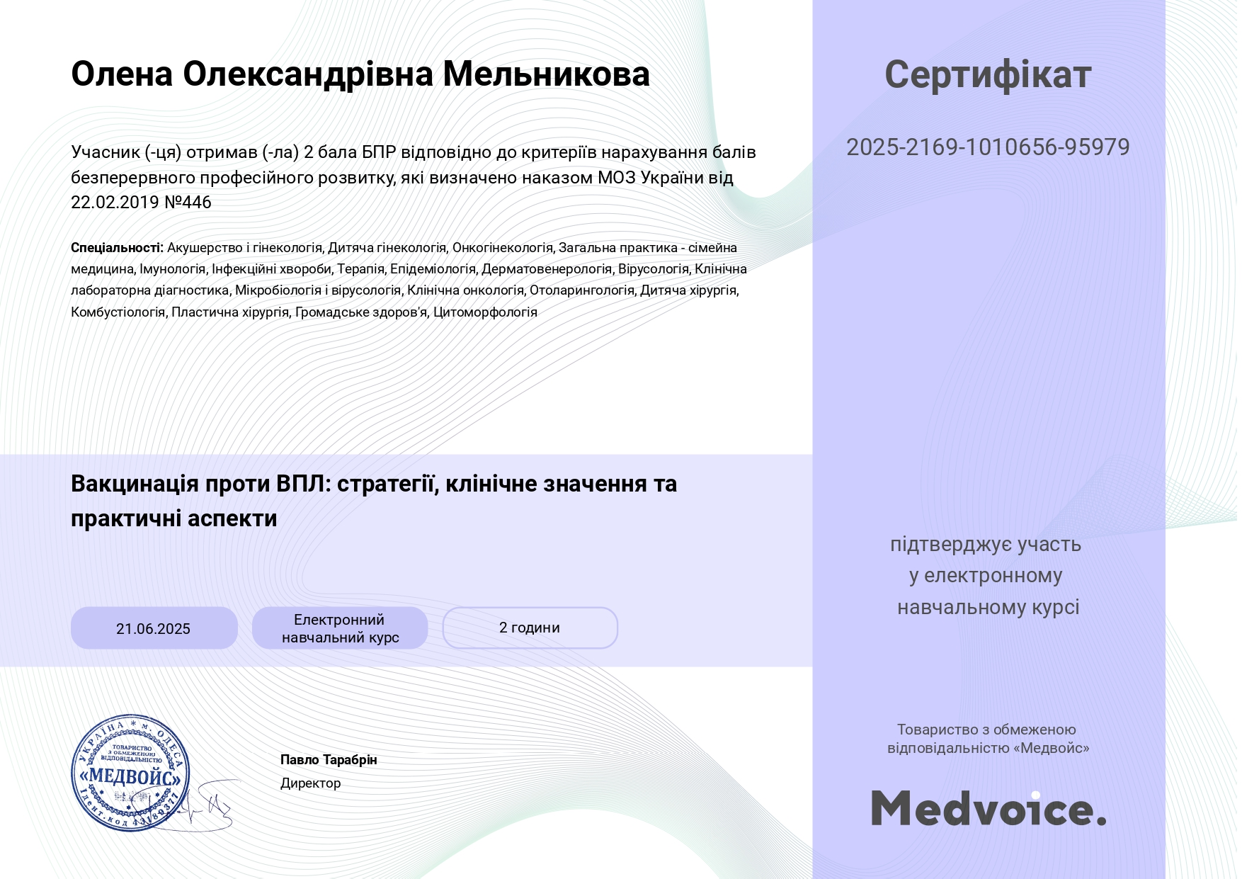- "Вакцинація проти ВПЛ: стратегії, клінічне значення та практичні аспекти" (Одеса, 2025)