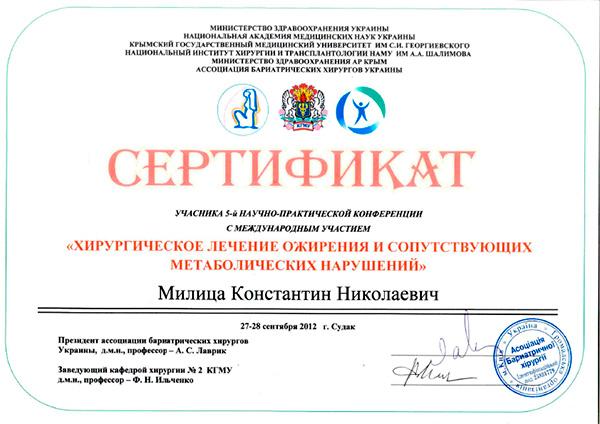 - Науково-практична конференція «Хірургічне лікування ожиріння і супутніх метаболічних порушень» (Судак, 2012)