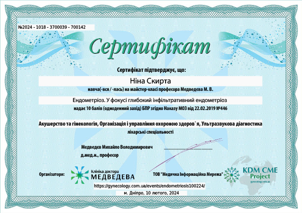 - Мастер-класс " Эндометриоз. В фокусе глубокий инфильтративный эндометриоз" (Днепр 2024 г)