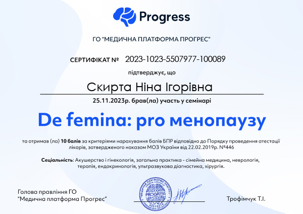 - Семинар "De femina: Pro менопаузу" ( Киев 2022 г)