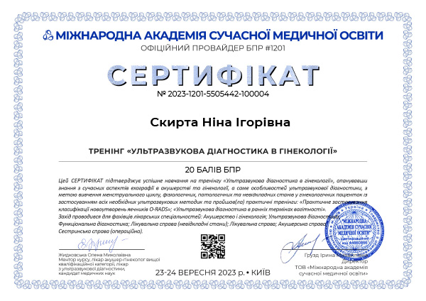 - Тренинг " Ультразвуковая диагностика в гинекологии" ( Киев 2023 г)