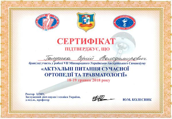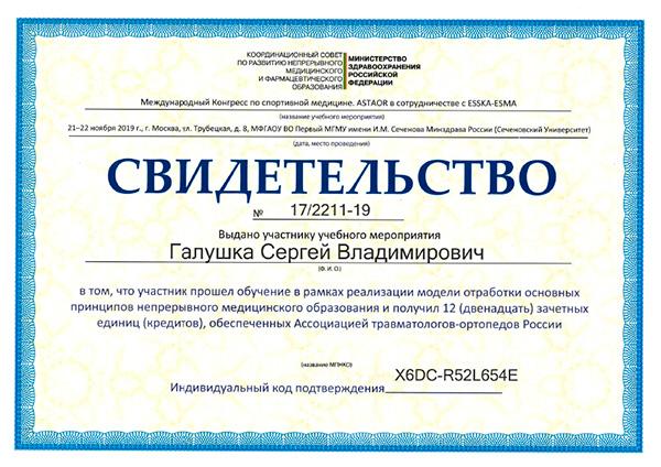- Аттестация по специализации «Ортопедия и травматология» (2018 г.)