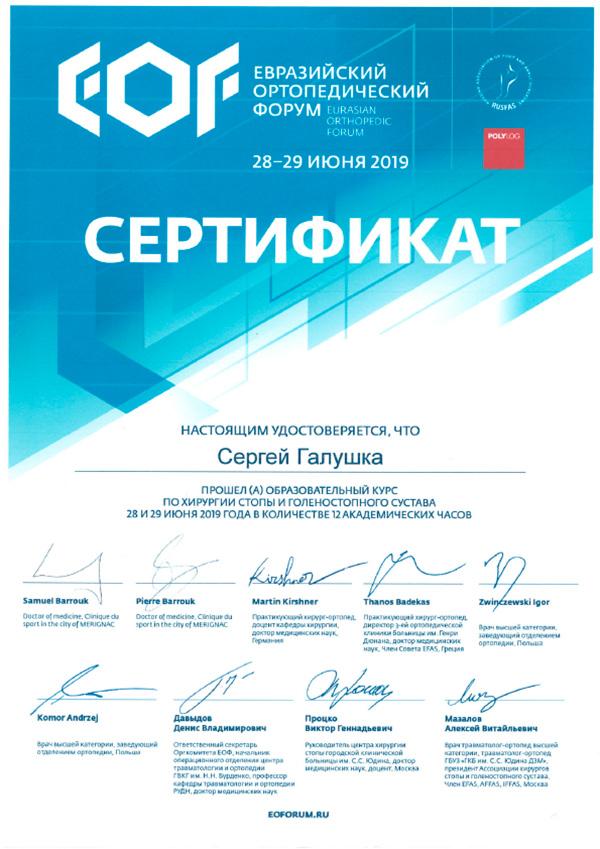 - Образовательный курс по хирургии стопы и голеностопного сустава. Евразийский ортопедический форум (Москва, Россия, 2019)