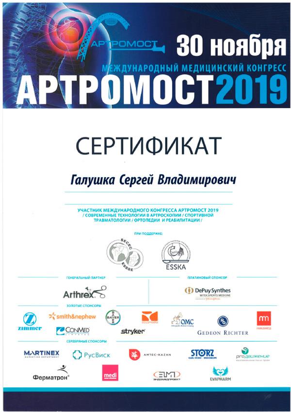 - Международный Конгресс «Артромост 2019 - Современные технологии в артроскопии, спортивной травматологии, ортопедии и реабилитации» (Москва, Россия, 2019)