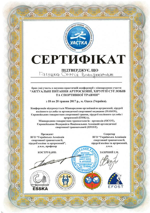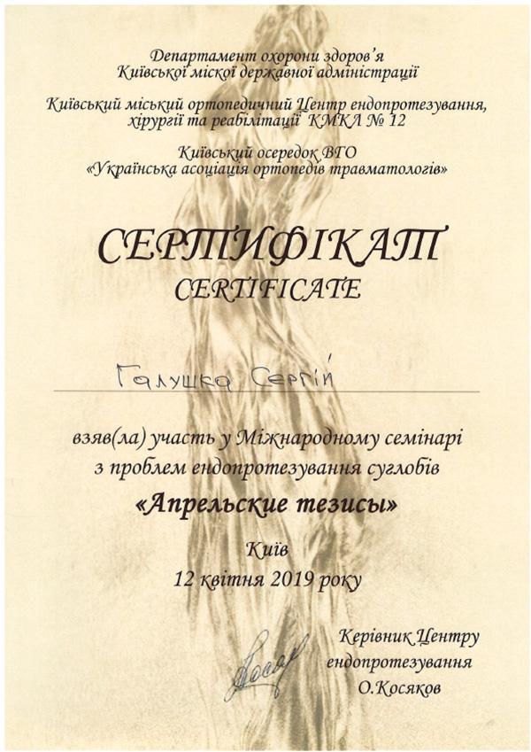 - Курсы Украинско-Немецкой ассоциации ортопедов-травматологов по хирургии переднего отдела стопы (Днепропетровск, 2010)