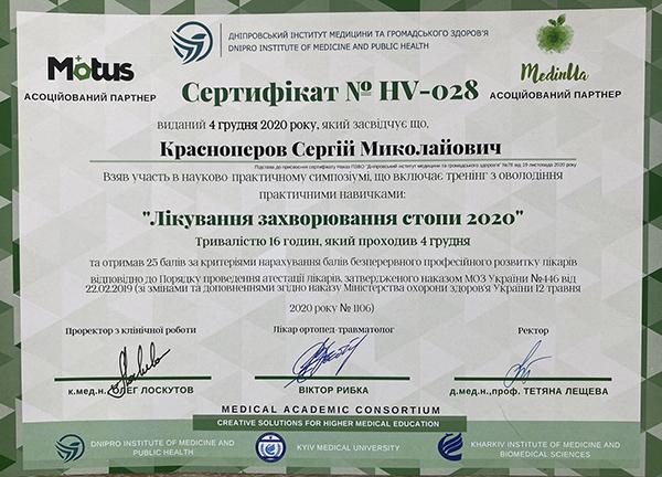 • Научно-практический симпозиум с тренингом и практическими навыками «Лечение патологии стопы 2020» (Днепр, 2020)
