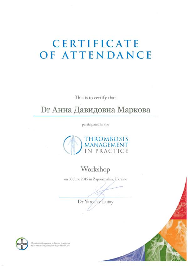 • Специализация в Запорожской медицинской академии последипломного образования и получение сертификата по специальности «Пульмонология» (2012 г.)